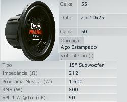 Potencia 900w rms/ 7200 pmpo , 12 bobina dupla 4 ohms